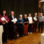 Vom Gesangverein Erheiterung gab es ebenfalls Urkunden an: Sabine Gensior-Mages für 25, Eva-Maria Dabbert für 20 und Inge Kallweit für 10 Jahre aktiven Gesang. Weitere Urkunden erhielten: Manfred Bischoff Schweizer für 25, Sibylle Kern für 20 und Ursula Voland für 10 Jahre treue Mitgliedschaft.